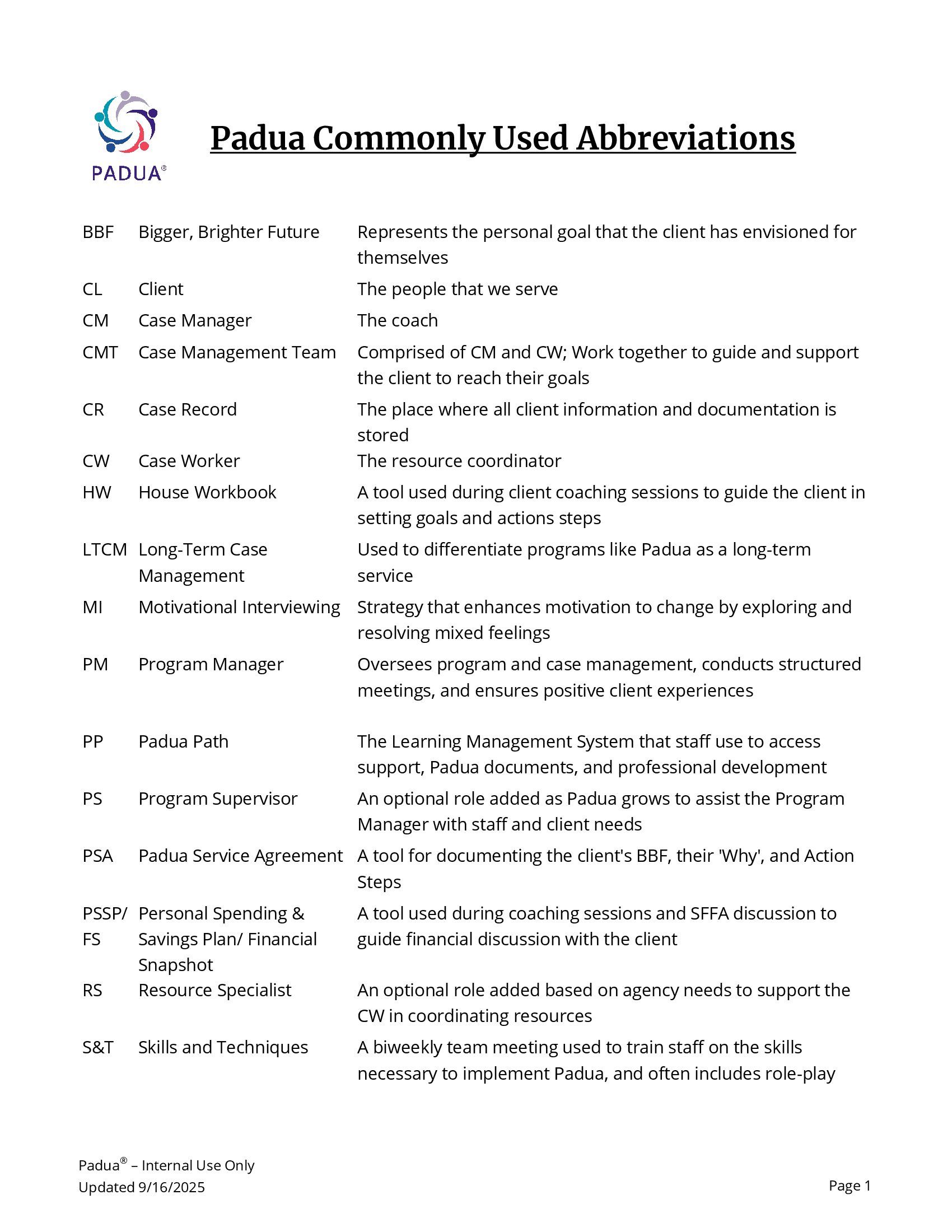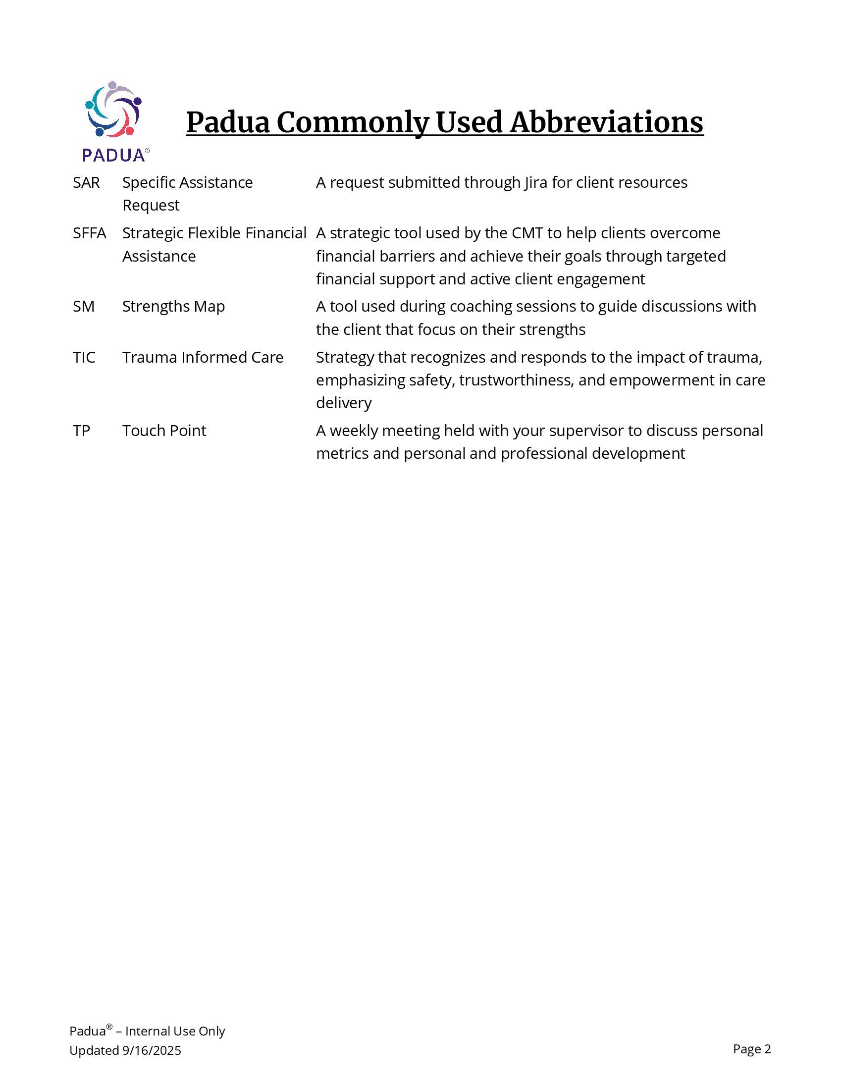 © 2026 Padua. All content is proprietary and confidential. Padua® is a registered trademark of Catholic Charities Fort Worth. Unauthorized use or distribution is prohibited.